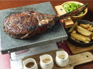 看板メニューは、300g以上のステーキを厚さ約30mmのホットストーンでご提供する「ステック・フリット」。